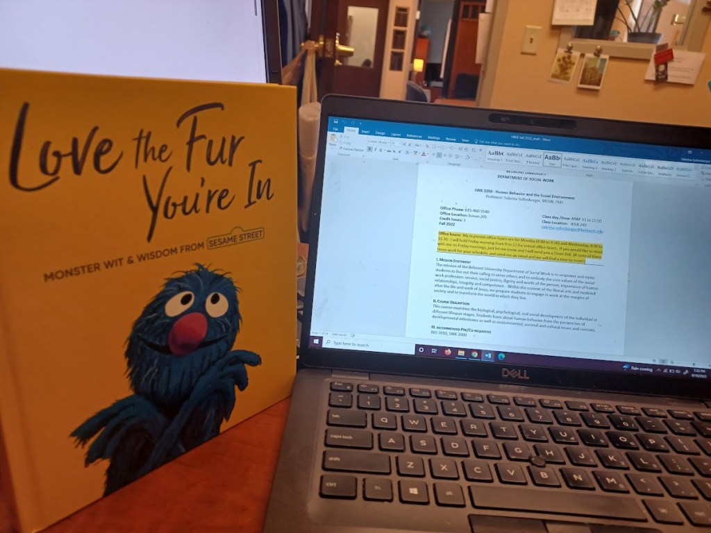 At the end of the spring 2022 semester, our seniors gave each faculty a book. They did a great job matching books to people, and the picture below is the one I was lovingly gifted. Love the Fur You’re In: Monster Wit and Wisdom from Sesame Street is going to be a guiding force for this semester, I can feel it.