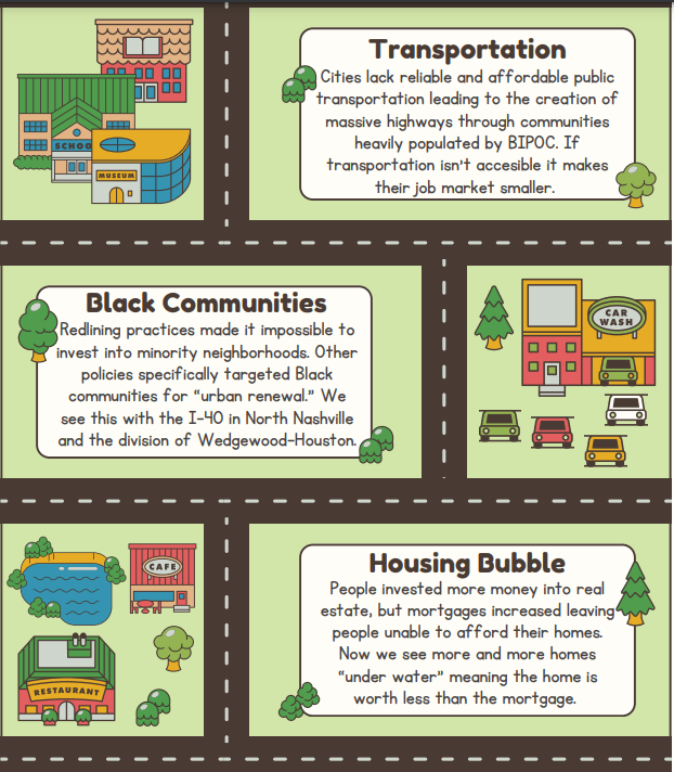 Toward the end of the semester is when we discuss policies related to housing and homelessness, including redlining, gentrification, vouchers, etc. In the fall semester, for the application part of this, I asked students to do a social media post or graphic that could be used to tell their friends/followers what they had learned. There were so many awesome responses to this mini-assignment, and I loved seeing how they were translating this information to others. We also had good discussion in the sense that doing these had raised additional questions for many of the students about things they didn’t fully understand, and also because they were getting questions and comments from their posts about them.