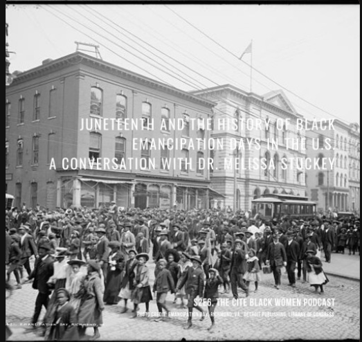 Here is a podcast episode from Cite Black Women, recorded a couple of years ago, about the origins of Juneteenth. I learned so much about timeline of emancipation days, what happened in Galveston, connections between Juneteenth and “watch night” services, connections with early policies and the establishment of Black communities in Oklahoma, and more.